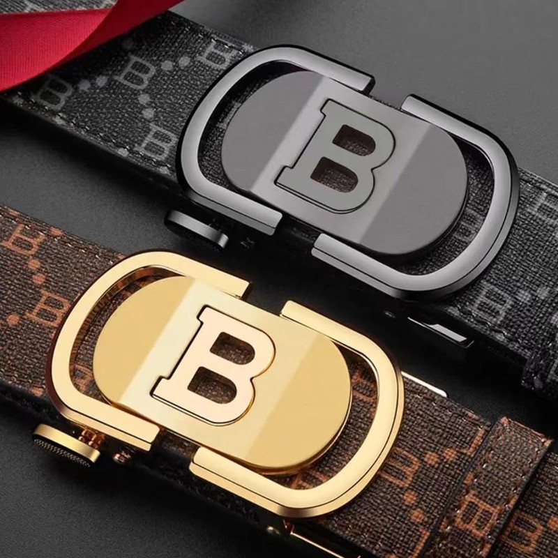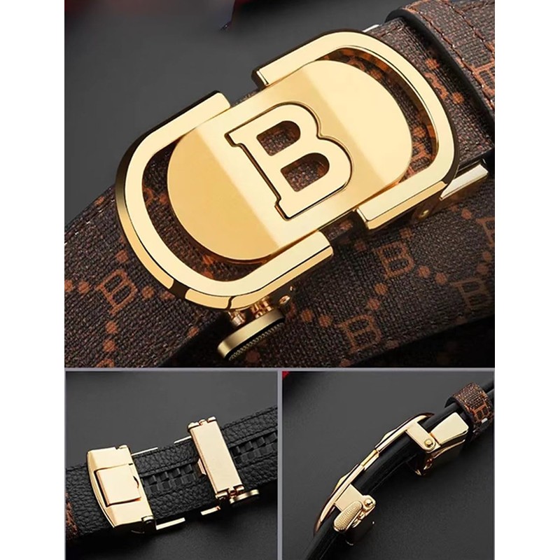 Ridoras Mens Designer Ratchet Belts for Casual Jeans with Letters B,Leather Belts with Automatic Slide Buckle(Gold,42"-45" Waist Adjustable)