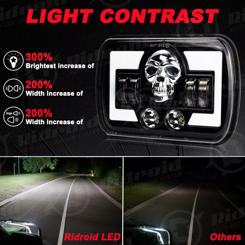 RIDROID 1PC 5x7 7x6 RGB LED Headlight Fit Nissan Pickup Hardbody 83-97 H6054 Replacement