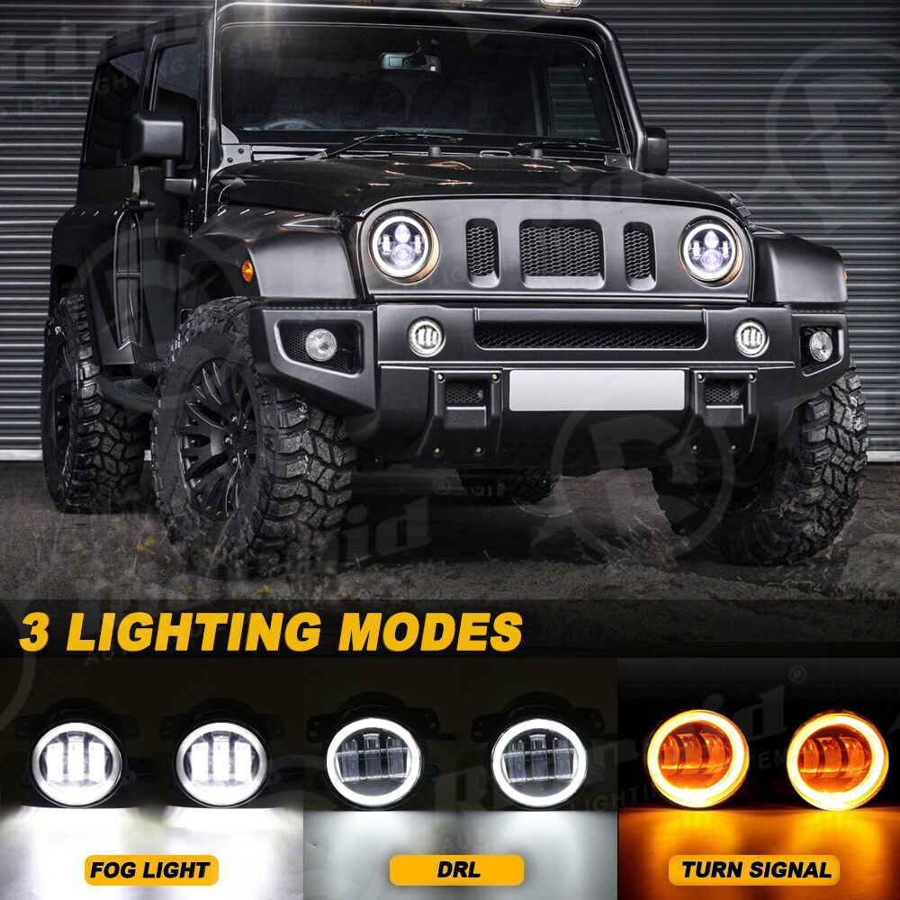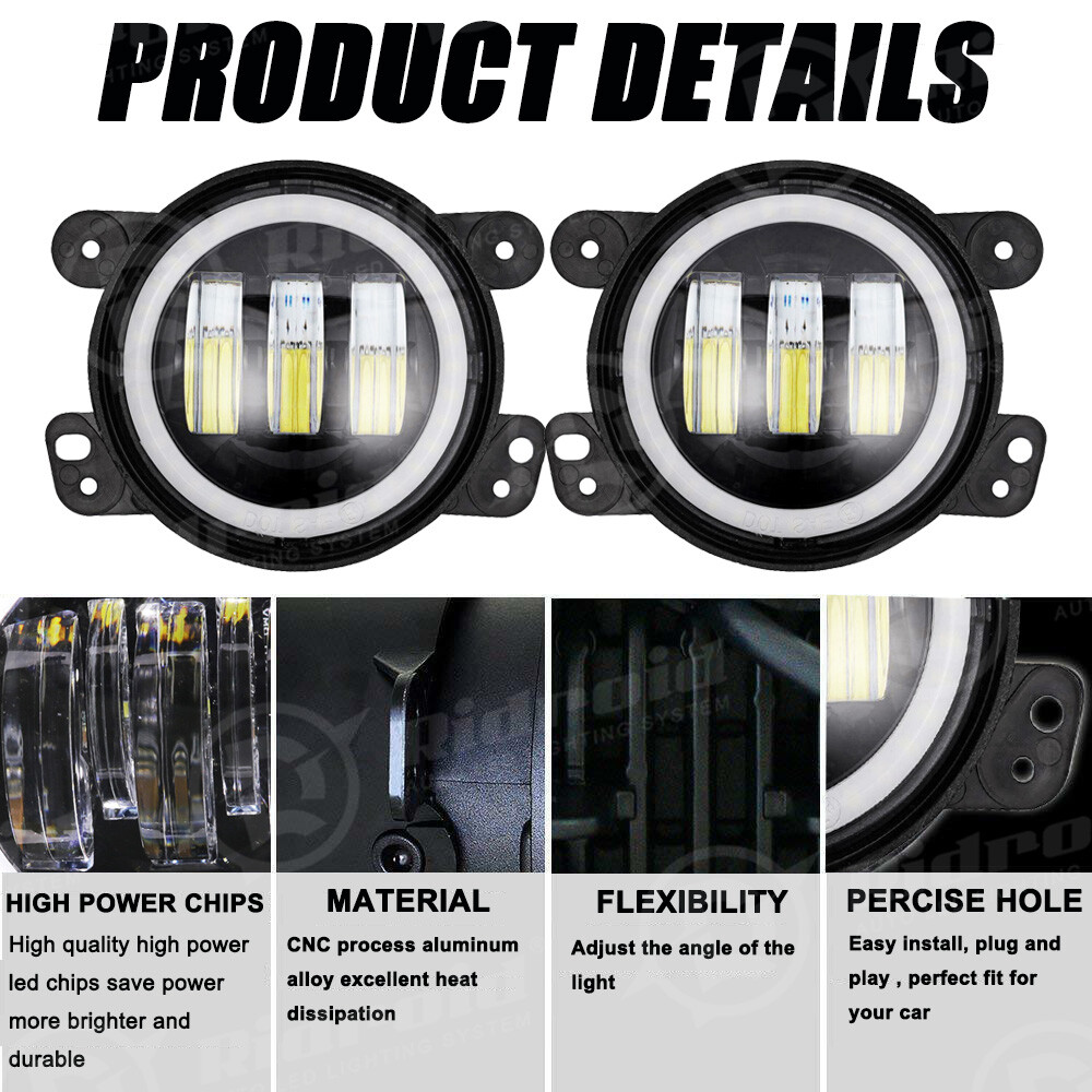 >4 INCH LED Fog Lights With White&Amber Halo Ring<