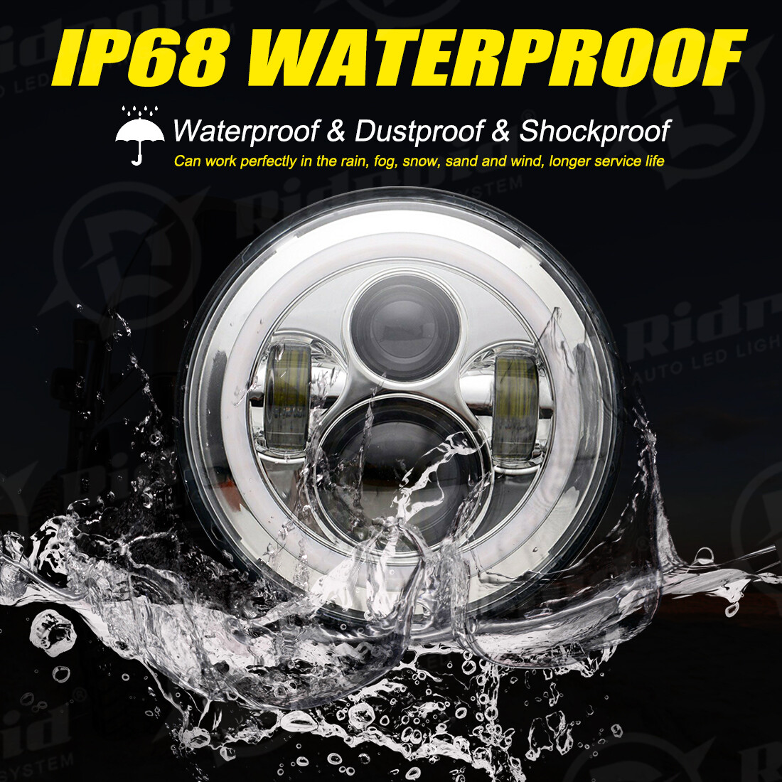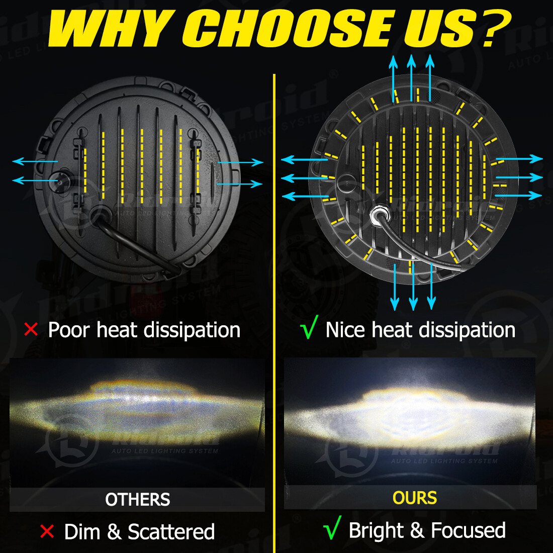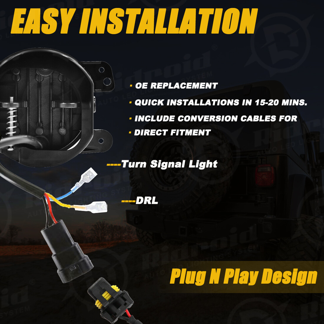 RIDROID 2007-2018 For Jeep Wrangler JK 7'' Round LED Headlights Turn Signal Lights Combo
