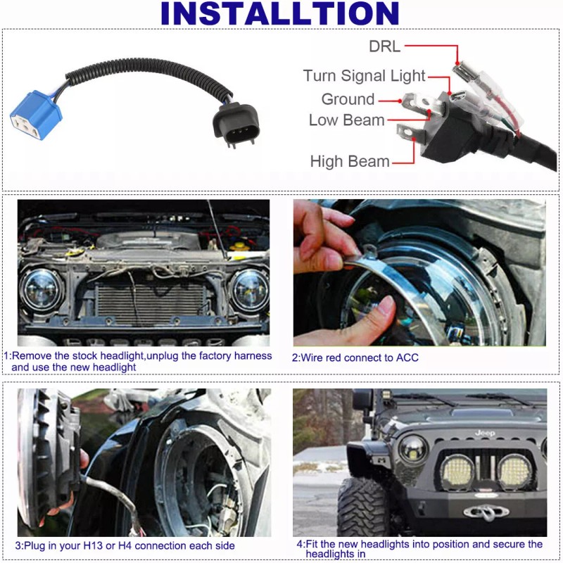 Accesories | H4 adapter harness & H13 adapter harness included. |