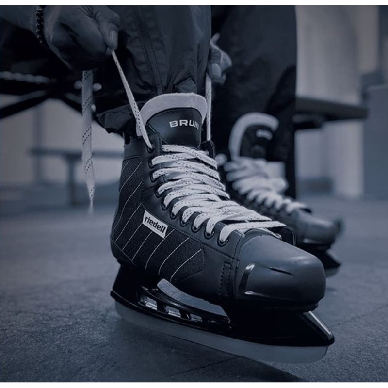 Classic design meets modern performance in the Bruin recreational hockey skate from Riedell. Durable polyester mesh uppers designed with a timeless hockey look are backed with high density foam and brushed nylon linings that will have you feeling as good as you look, whether you’re out for a casual date skate or playing a pick-up game on the pond with your friends. To give the Bruin the lasting performance you need, the tongues incorporate a supportive EVA foam pad for protection against lace bite, and every pair is fitted with reinforced nylon outsoles, blade holders, and toe caps that have been tested to withstand high impact events should you find yourself in the way of an oncoming slap shot.With comfort where you want it and strength where you need it, the Bruin welcomes you to get out onto the ice time and time again.