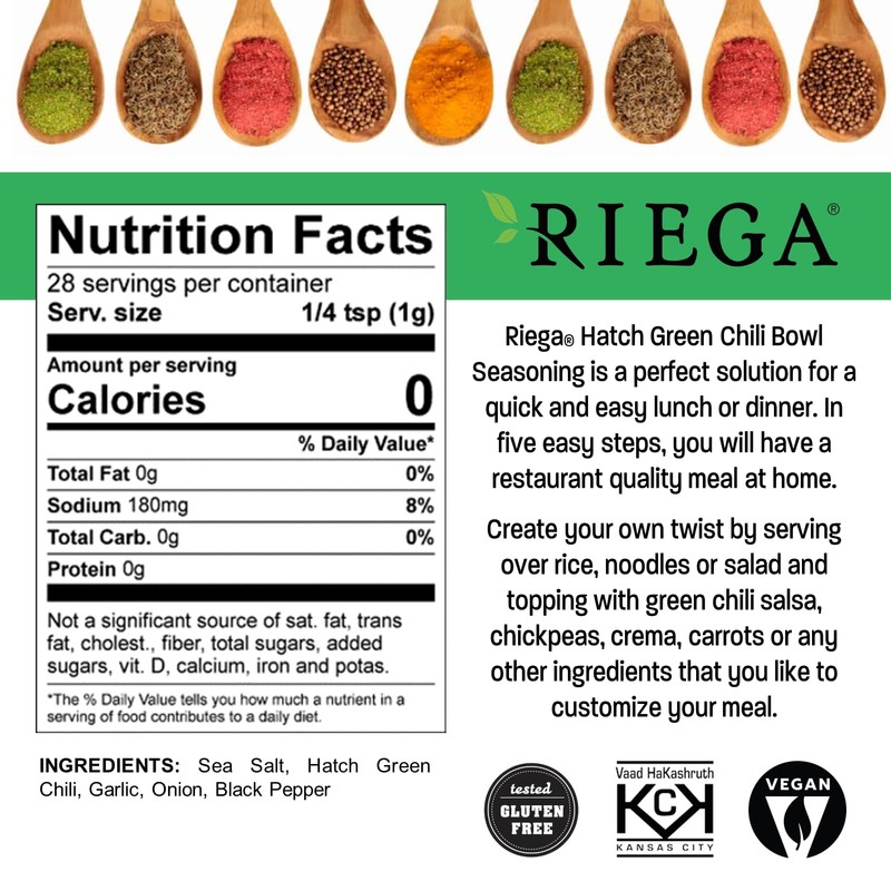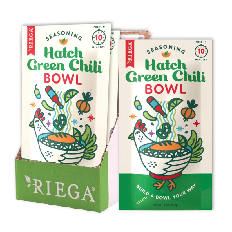 Riega Hatch Green Chili Bowl Seasoning, Authentic Hatch Green Chili Pepper Flavor to Enhance any Chili, Salad or Rice Bowl, 1 Ounce (Pack of 8)