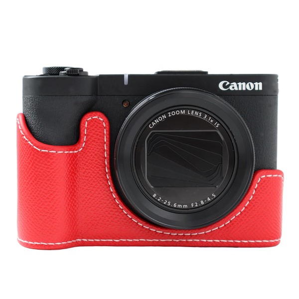 Rieibi Camera Case For Canon PowerShot V1, Pu Leather Half Case, red, Fashion