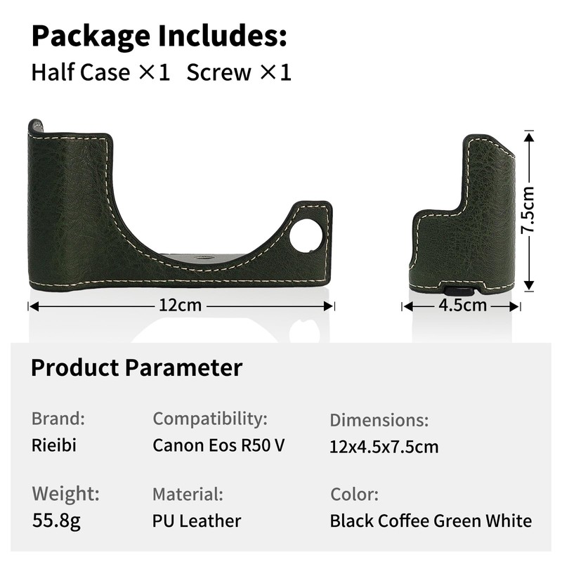 Rieibi EOS R50V Camera Case, Quality PU Leather Protective Half Case for Cano...
