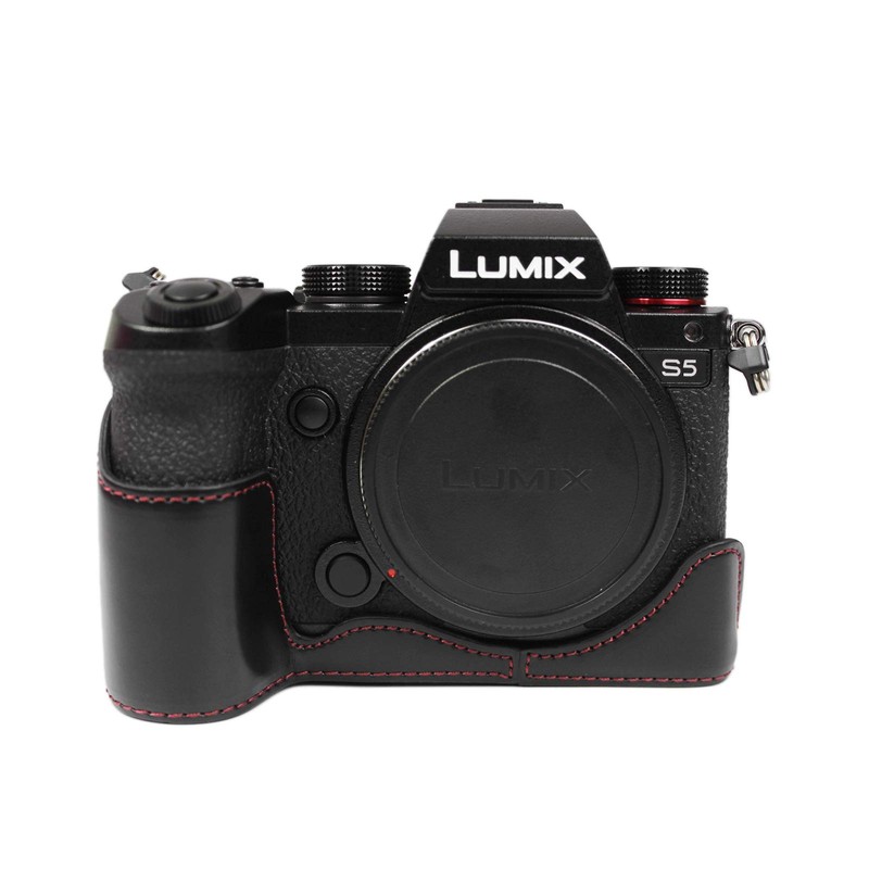 Rieibi Panasonic S5 Camera Case, PU Leather Half Case Compatible with Panasonic Lumix DC-S5, DC-S5II, DC-S5IIX,Black