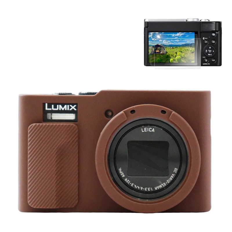 Rieibi ZS99 Camera case, Soft Camera Silicone Protective Case for Panasonic Lumix DC-ZS99, Accessories with 2 PCS Screen Protector, Lightweight - Coffee