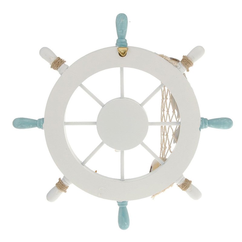 Rienar Nautical Beach Wooden Boat Ship Steering Wheel Fishing Net Shell Fish Home Wall Décor(11" Diameter)