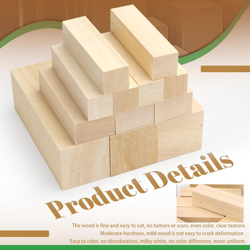 - Versatile: lime wood, all three sizes are available, carving wood 10 x 5 x 5 cm and 10 x 2.5 x 2.5 cm and 5 x 5 x 5 cm, which can meet the needs of different carving projects, this product will be the ideal material for carving art, whether it is sculptures or decorative items that can be expressed by the texture and shape of the wooden block.