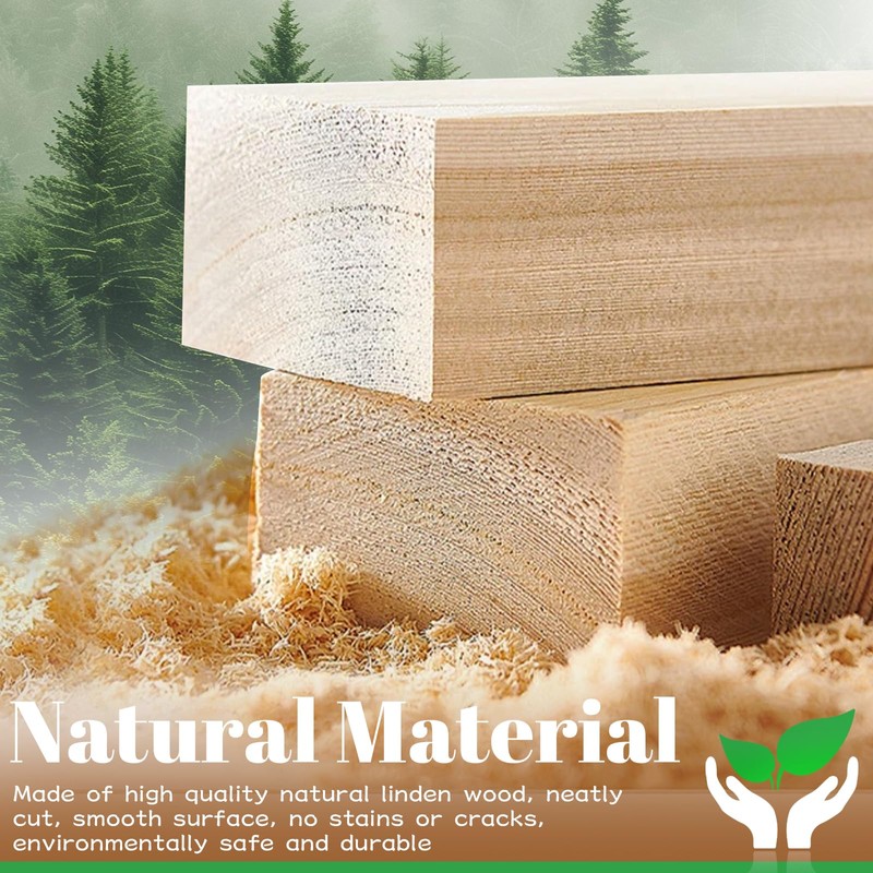 - High-quality material: the carving wood lime wood is made of high-quality wood, which is strictly tested and processed to ensure that the wooden strips have excellent hardness, density and texture, no cracks, even texture, wear-resistant, corrosion-resistant, easier to carve, natural wood block is environmentally friendly, non-toxic and harmless, to ensure the safety and beauty of work.