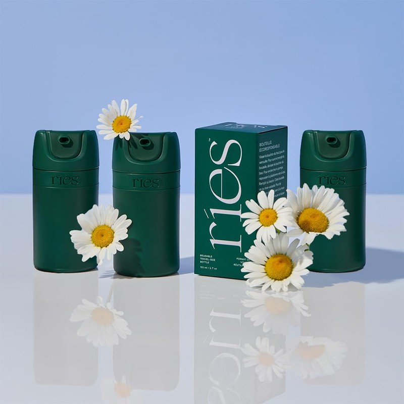 RIES Starter Set Toiletry Travel Bottles – Set of 3 (1.7oz) Airless Pump Containers for Shampoo, Conditioner, Body, Face – Leak-Proof, TSA-Approved, Dishwasher Safe- (Outlier Sand)