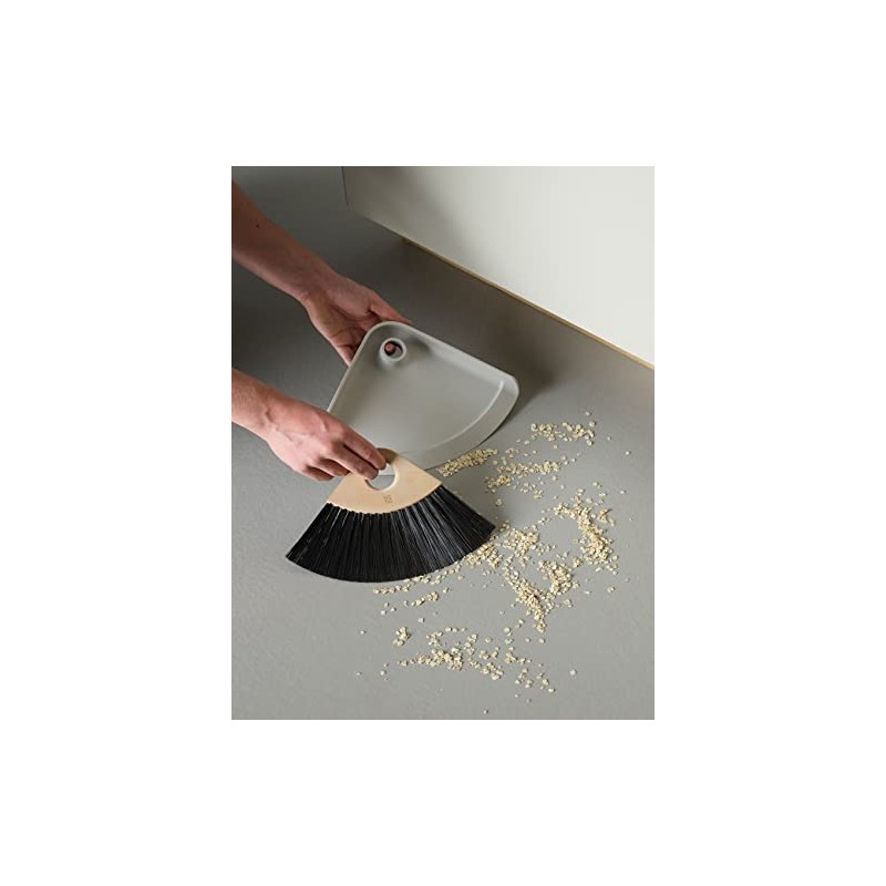Dustpan and broom in a beautiful and compact design. With SWEEP-IT crumbs can be easily and quickly swept up in the kitchen or on the table as well as soil on the balcony. The dustpan broom set takes up little space under the sink or in the drawer. Or what actually speaks about this graphically strong design hanging the wall? With this set you will receive a specially designed hook that can be attached either to the wall or to the inside of a cabinet using a single nail.