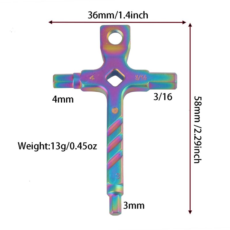 - 【Reduce Complexity to Simplicity】The commonly used standards is here in 1 key for photograghers. Don't have something you didn't need or have everything but weighed too much like other multitools. This lightweight 4 tool cross wrenches key is the way to go on a trail hiking. Handy tool for cameraman, pilot