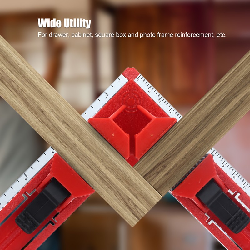 1、Reliable Clamp: Ergonomic design together with 2 rubber pad will effectively protect your wood block from damage. 2、Quick Clamping: The lockable corner clamp enables quick clamping with extra stability, practical and reliable. 3、Practical Uses: With 9.5cm maximum clamping range and adjustable angle, the clip is ideal for various materials. 4、Broad Utility: Widely used for drawers, cabinets, square boxes and photo frames reinforcement, furnitures, etc. 5、Good Materials: Mainly made of premium aluminium alloy and high strength ABS materials, durable for long use.