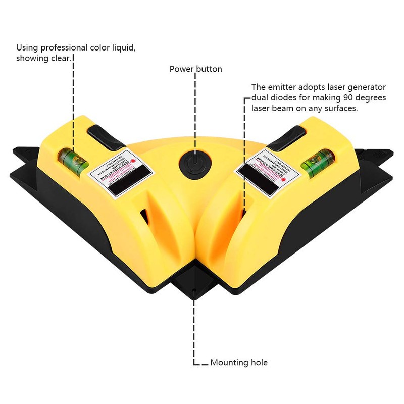 - PRECISION: Projects two laser lines at a perfect 90° angle and and turning angles in 5-degree increments | Align picture frames, chair moulding, tile, borders, and so much more! Two suction cups allow the laser level square to be mounted onto the surfaces stably.