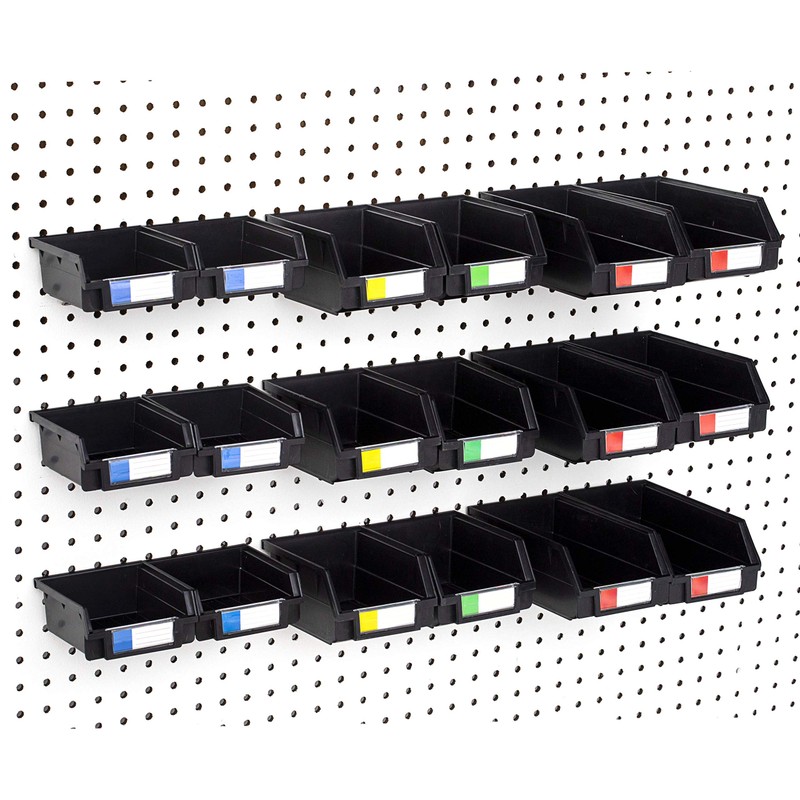 Right Arrange Pegboard Bins - Set of 18, Black - Hooks to Any Peg Board - Organize Hardware, Accessories, Attachments, Workbench, Garage Storage, Craft Room, Tool Shed, Hobby Supplies, Small Parts…