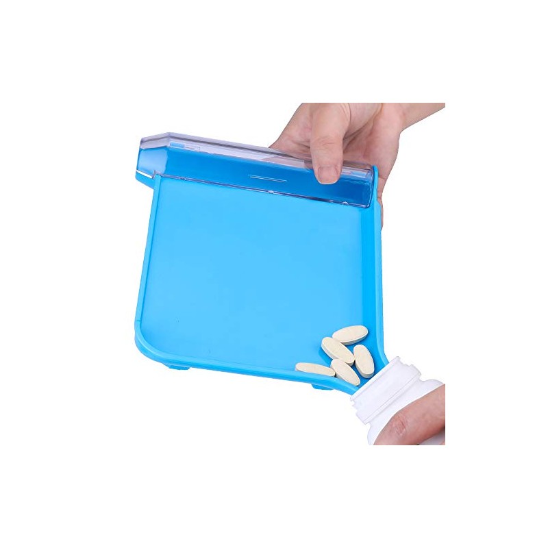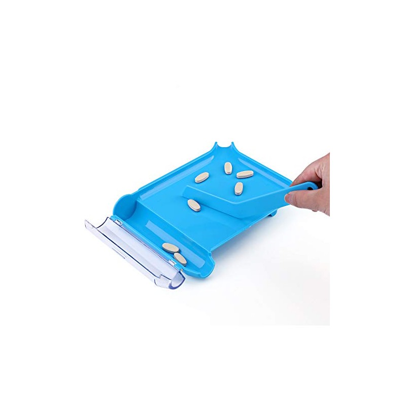 **Help you and your relatives better manage your medications** **How to use:** Pour the pills on the tray. Count the pills you need and move them in the lidded compartment with spatula. Pour the redundant pills back into their containers through the top right gap. Tilt the tray and let the pills which you have counted drop back in other vail or pill boxes. Wipe off the counting tray with a damp paper after counting each medication.