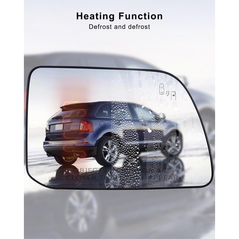 - One-click defogger: Passenger Side Mirror Replacement Glass has a built-in electric heating wire design. Just one-click to start the heating function, you can quickly remove the mirror frost and fog caused by rain and snow weather, ensuring that the driving field of vision is always clear and improving driving safety