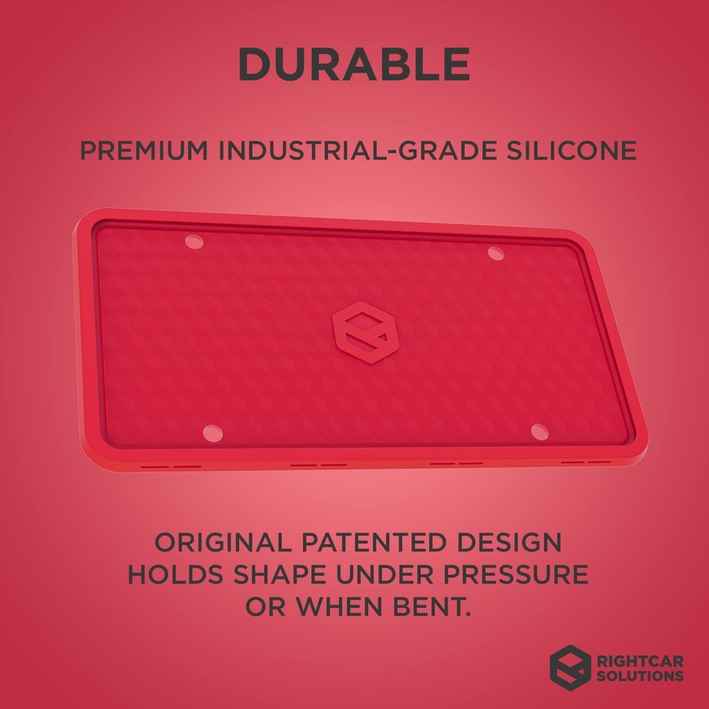 Rightcar Solutions Silicone License Plate Frames | The Original Premium Grade Silicone Car Plate Frame | Rust Proof, Rattle Proof, Weather Proof License Plate Holder (Red)