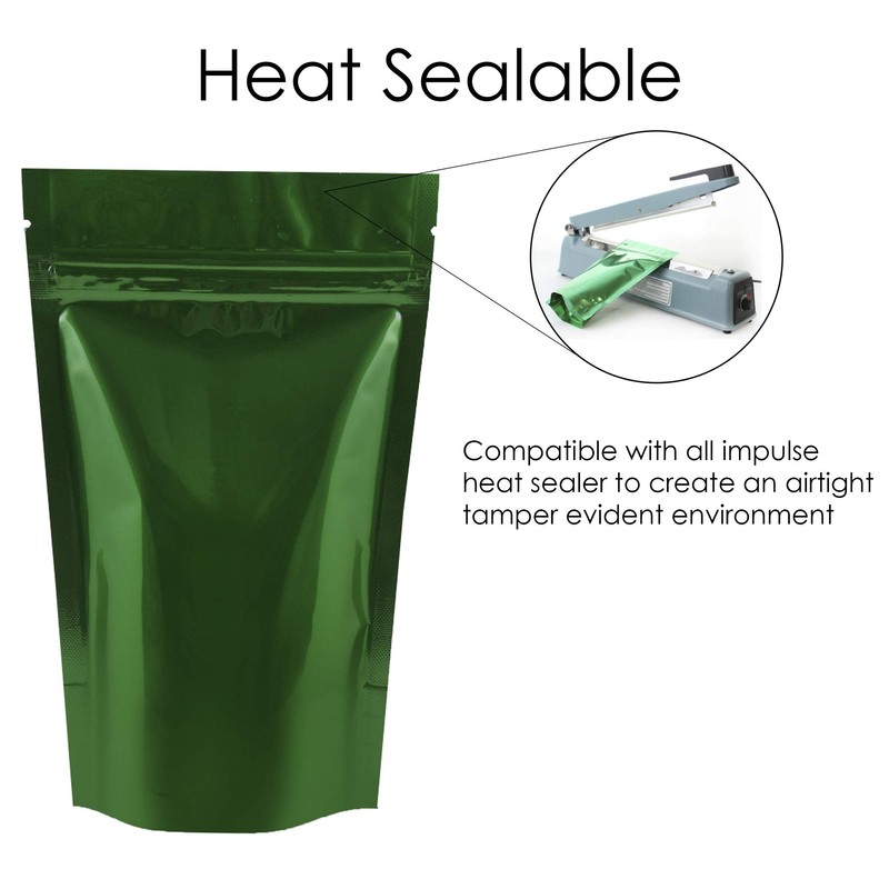 - ELEGANT LOOK: The green shiny finish stand up pouches are lightweight, easy to re-pack, and come in a variety of storage capacities. The pouches are green in colour, making them ideal for pasting logos and marketing strategy. It comes in a variety of sizes and has an eye-catching shiny finish.