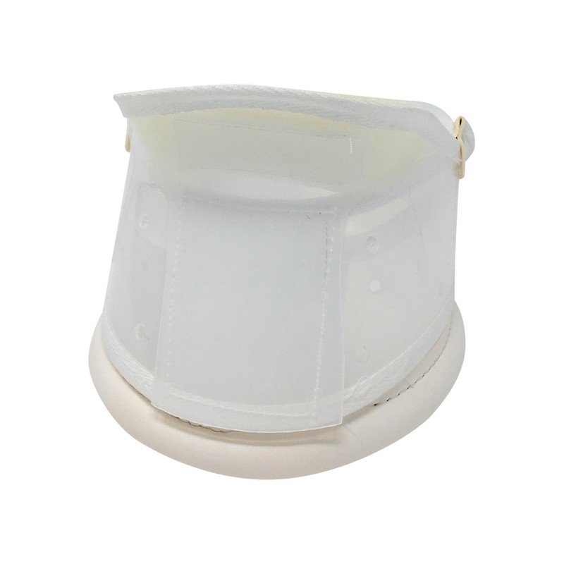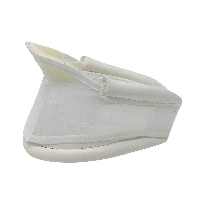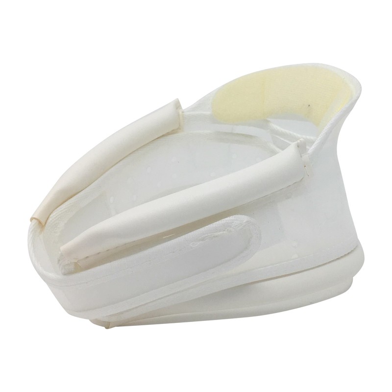 Truform-OTC brand (model 9979) Rigid cervical Collar with chin piece. For moderate cervical lesions, including Whiplash injuries, osteoarthritis, and cases of mild to moderate soft tissue damage. Perforated polyethylene with vinyl-covered, foam-padded edges. Hook-and-loop fastening and adjustment panels. Contoured chin rest with removable pad enhances wearer comfort and provides effective flexion control. Anterior height adjusts from 4.5" To 6" - sternal notch to lower mandible.