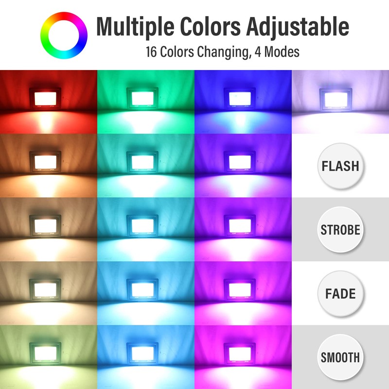 - 【Mehrfarbiges Flutlicht】: 30W LED Flutlicht RGB verfügt über dimmbare 16 verschiedene Farben, die ausgewählt werden können, einschließlich warmweißem Licht. Ausgestattet mit RGB-LED-Chips mit hoher Helligkeit. Sie können Ihre Lieblingsfarbe selbst gestalten und die Speichertaste verwenden, um sie bei Bedarf einzuschalten.