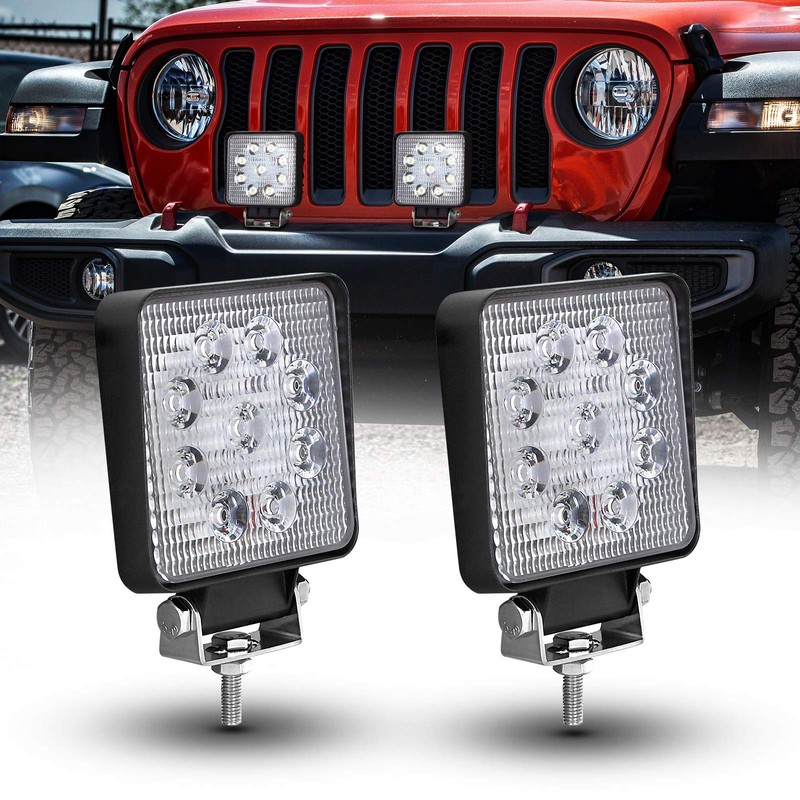 RIGIDON 2 Pcs LED Scheinwerfer 4" 10cm 27W LED Arbeitsscheinwerfer Quadrat 12V 24V Flutlicht Zusatzscheinwerfer Auto Wasserdicht für Offroad Traktor SUV ATV LKW 4x4, 6000K LED Rückfahrscheinwerfer