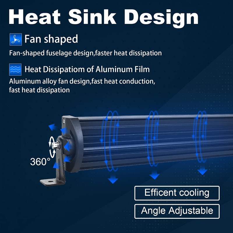 - 【Fast Heat Dissipation】The off-road light has a specially designed die-casting aluminum alloy heat sink and fast cooling heat sink, combined with IP67 waterproof and dustproof function, it can withstand the harsh conditions of the outdoors, effectively extending the service life of the light bar to 30000 hours.