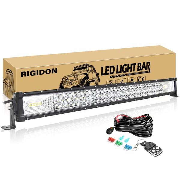 RIGIDON 32 Inch 405W LED Light Bar with Wire Harness Strobe Switch Remote Control, Triple Row Flood Spot Combo 40500LM Driving Boat Off-road LED Work Light for ATV UTV Truck Roof Bumper