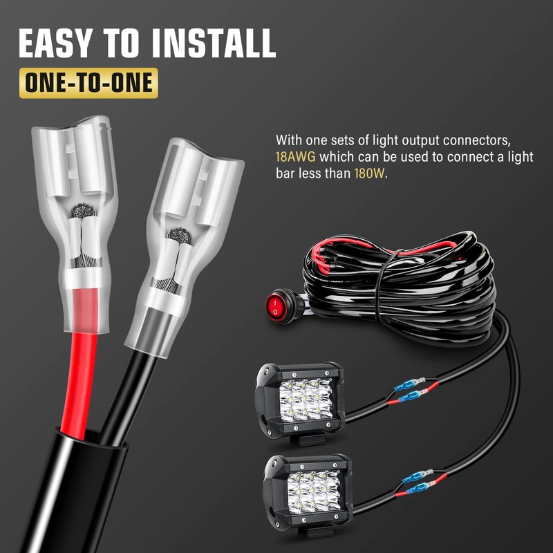 - 【Multipurpose】The car wire is suitable for most cars, SUVs, ATVs, UTVs, motorcycles, trucks, and other off-road vehicles. It is 2 cables that can be connected with 2 light output ports of high power off-road LED light bars up to 675W.