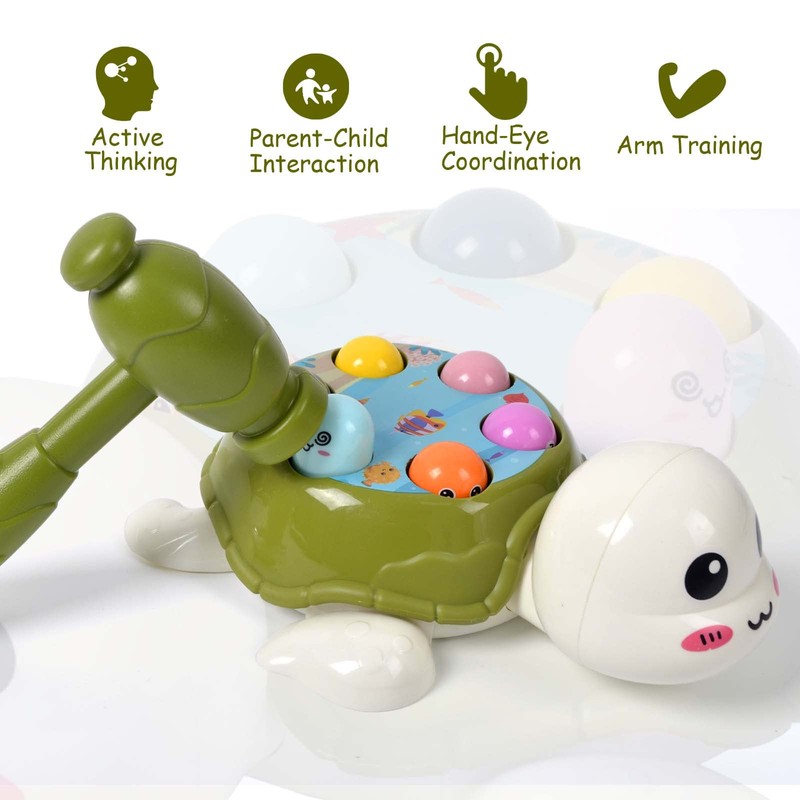 - Cute Design Toy: The cute tortoise-shaped design with cartoon expression and brightly colored hamsters, when you hit a hamster, another hamster pops up, which is exciting and interesting. This whack-a-mole toy is easy and fun to play without batteries.