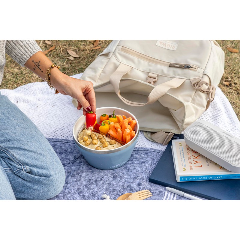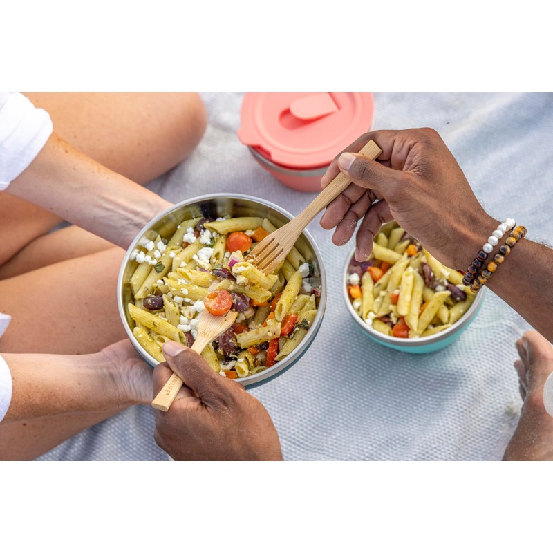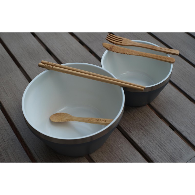 - The ALL-NEW Fresh Bowl Set features a stylish ceramic coating for a premium eating and serving experience. - Insulated, non-toxic travel bowl keeps food hot / cold for hrs & topped off with an air-tight & leakproof lid so you can SERVE, EAT, STORE, anywhere! - Complementary RIGWA Bamboo Utensil Set - Includes Spoon, Fork, Knife, Chopsticks, Canvas Travel Bag