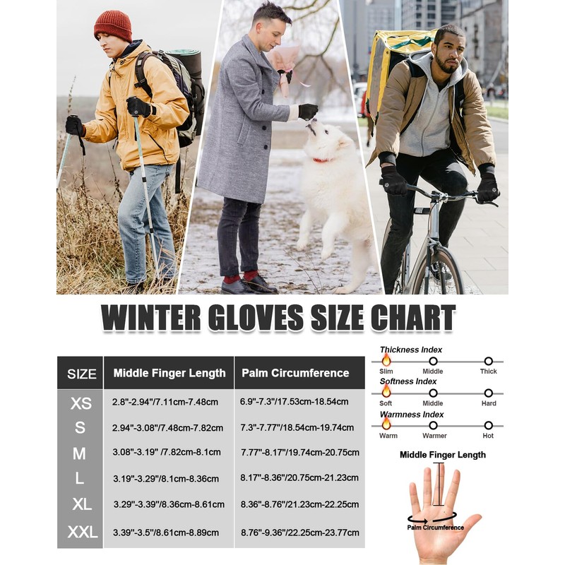 - Palm Silicone Grip: These cold weather gloves feature clever palm silicone grip design, providing you with excellent traction. Whether you're on wet and slippery surfaces or uneven terrains, the unique anti-slip design of the winter gloves will accompany and support you during outdoor activities. Ideal for cycling, drving, runing, camping, walking, hiking, alaska cruise, fishing, skiing, biking and snow