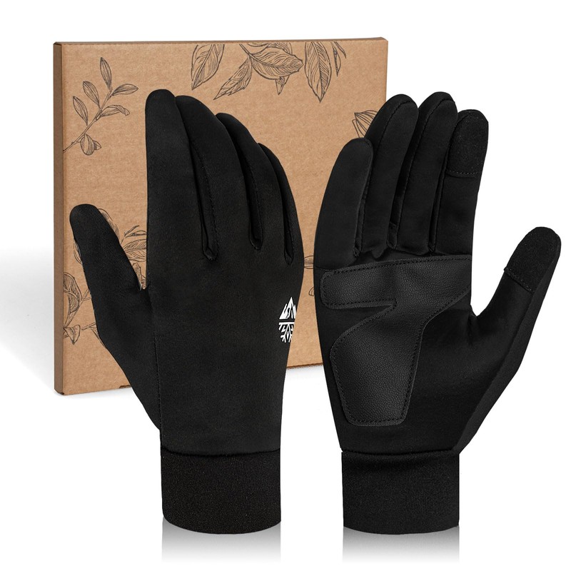 RIGWARL Thin Fleece Gloves for Cold Weather Waterproof, Winter Gloves Men Women with Touch Screen, Black Thermal Warm Motorcycle Gloves for Running Hiking Walking Skiing Biking Snow, Gifts for Men