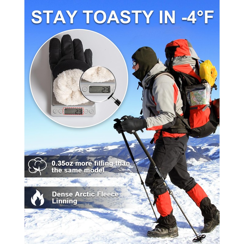 • DOUBLE WATERPROOF FOR RAIN OR SNOW: Our mens winter gloves boast double waterproofing with a built-in waterproof bag and TPU membrane, completely waterproof even soaked in water. These waterproof gloves keep hands dry and warm in wet and snowy conditions. The choice of ice fishing, camping, iceland travel, alaska cruise