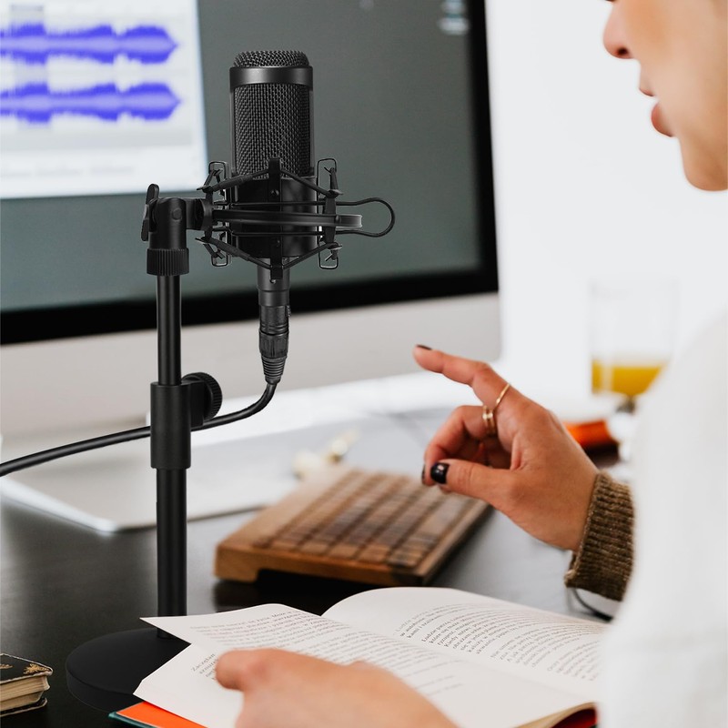 Our desktop mic stand is made of sturdy metal construction, making it a great mic stand for use on the desk.