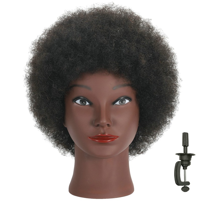 - ★★★★★100% real human hair african american afro professional braid mannequins,8 inch hair length,suitable for hairdressers,hairstylists,cosmetologist,barber shop and cosmetology school students to practice braiding styling coloring bleaching dyeing curling cutting setting updos and taking state board exam;