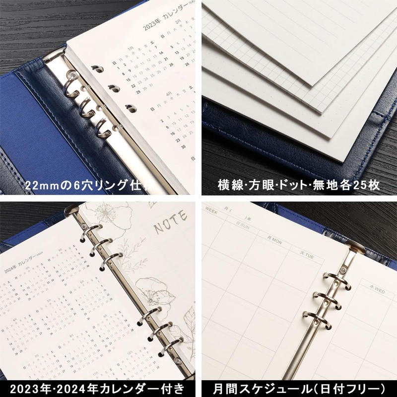 Product Details: Stylish made with the same texture as genuine leather; This notebook is A5 size, which combines excellent durability and an elegant gloss, making it easy to use and clean. This personal organizer A5 size is carefully finished one by one with expert sewing technique. Use this notebook A5 size daily to bring your originality. This personal organizer has excellent storage capabilities. This personal organizer A5 size uses a wide 6-hole ring with an inner diameter of 0.9 inches (22 mm), and can hold approximately 100 refills. This organizer A5 size is made of high quality fabric and hand crafted by artisans, so it is sturdy and easy to use, but with a luxurious beauty. A5 size personal organizer organizer has a wide variety of refills besides diary and memos, so you can mix and match it to customize it. This is an A5 sized system notebook that is easy to use.