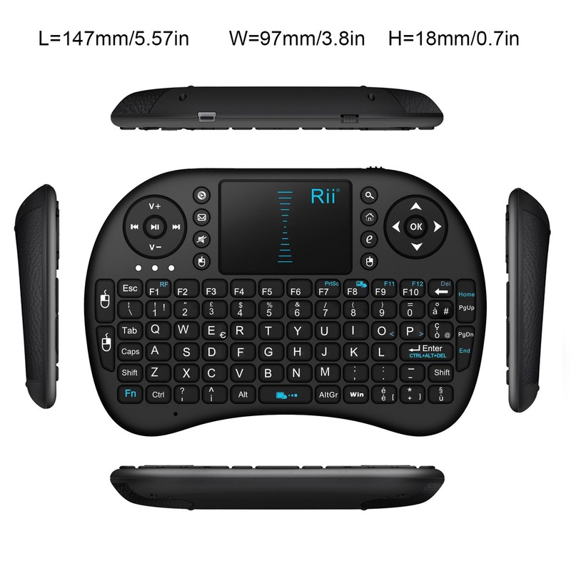 Rii Mini i8 Wireless (ITALIENISCHES Layout) - Ergonomische Mini-Tastatur mit Touchpad-Maus für Smart TV, Mini PC, HTPC, Konsole, Computer