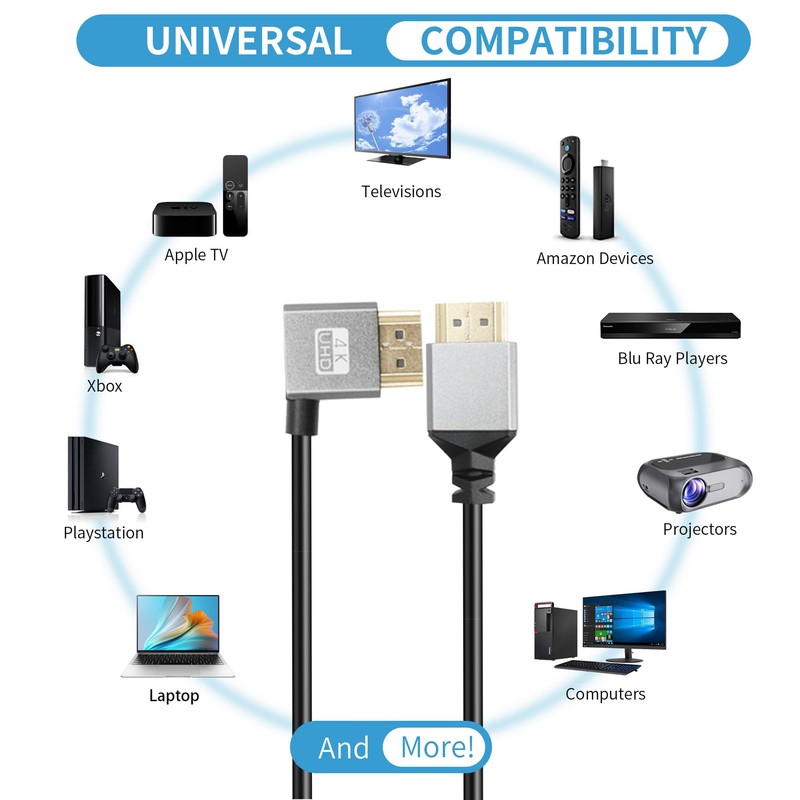 - 4K HDMI Cable -- This HDMI cable supports 3D and 4K Ultra HD TVs with 1080p HD resolution to provide you with sharper images. High Dynamic Range (HDR) provides brighter, more realistic colors. Backward compatible with 2K, Full HD 1080p and HD 720p.