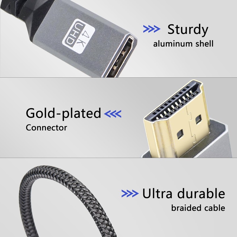 - HDMI Cable - This high speed 4K HDMI extension cable has gold-plated connectors that resist rust and corrosion, and a nylon braided casing that resists bending, extending the life of the HDMI cable.