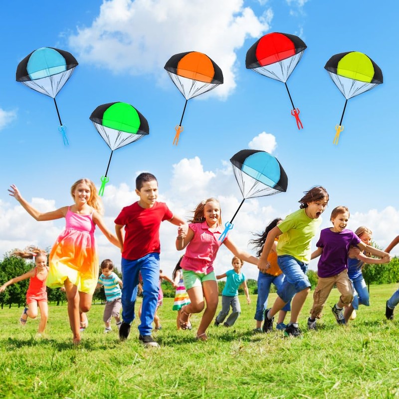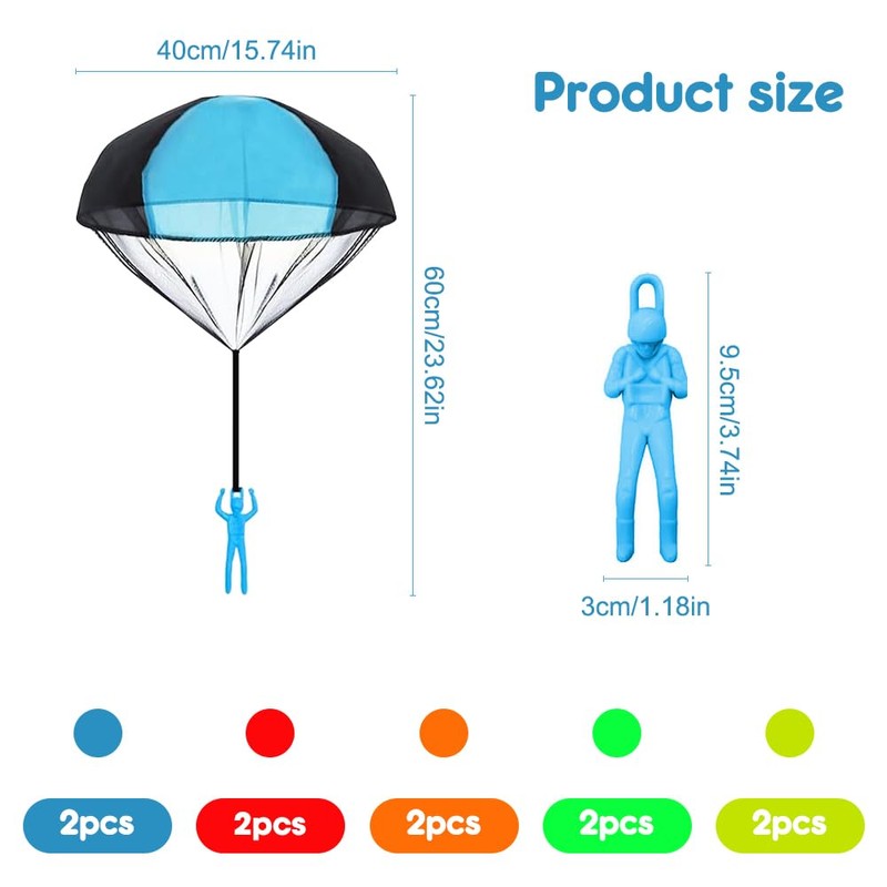 - Ideal gift for occasions: whether as party bags for children's birthdays, school prizes or advent calendar filling: the 10 colourful parachutes (mixed colours) inspire in groups and are suitable for boys / girls aged 3 and over. Adults can also strengthen parent-child bond when playing together.