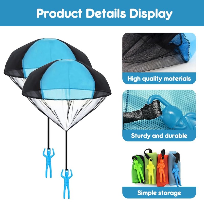 - SAFETY & HIGH QUALITY MATERIAL The parachutist toy is made of durable recyclable nylon fabric and child safe plastic without sharp edges or small parts. The durable workmanship ensures a safe playing experience for children indoors and outdoors, while the lightweight umbrella ensures optimal flight characteristics.
