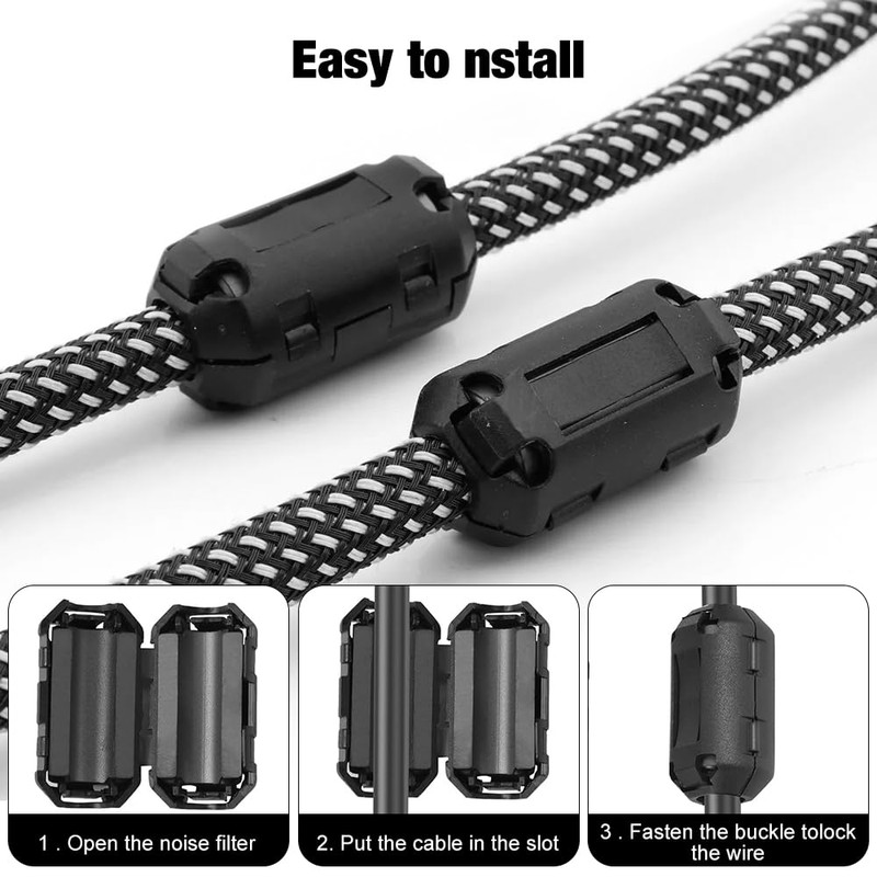 - High quality: Ferrite cores are made of plastic housing and ferrite core, and the internal self-adjusting clamp can be firmly attached to cables and works for a very long time.