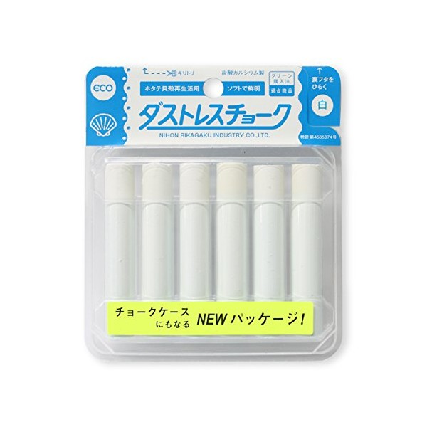 Rikagaku White Dustless Chalk, 6-Pieces (DCC-6-W)