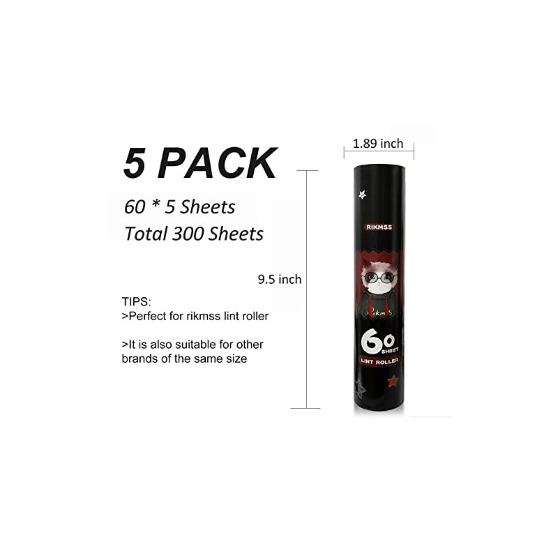 - 🌷 RIKMSS lint roller refills 5 Pack, 9.5 inch Wide Extra Sticky Lint Roller Refills,60 Sheet Per Refill (Total 300 Sheets)