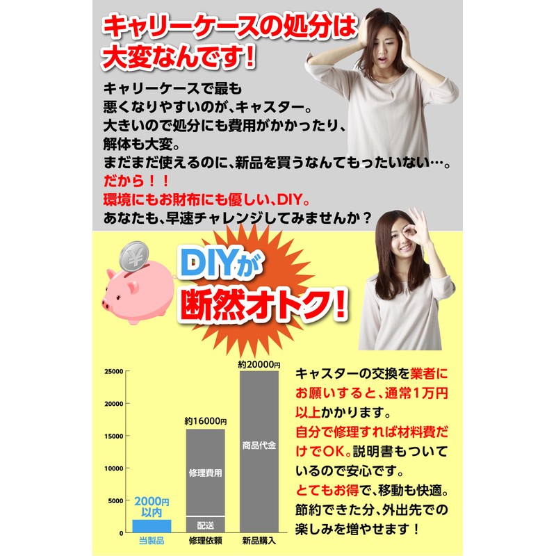 • (Wheel Replacement and Repair) When wheels deteriorate from your suitcase or carry bag, this wheel repair kit can be easily replaced. Easy to install even for beginners