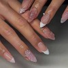 RikView White Press on Nails Medium Fake Nails French Tips Nails with 3D Design Almond Nails Glossy Full Cover Nails 24 PCs/Set
