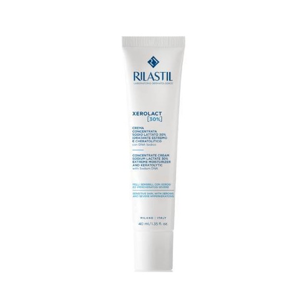 Rilastil Xerolact Concentrate Cream Sodium Lactate 30% is a highly restitutive and emollient treatment specific to reduce the accumulations of stratum corneum and contrast severe localized hyperkeratosis.
