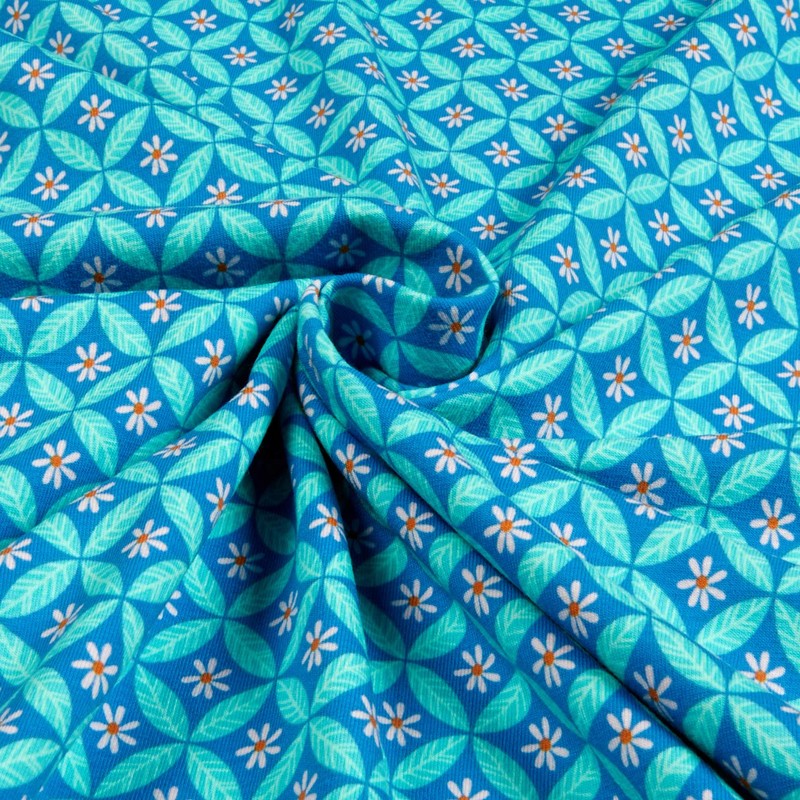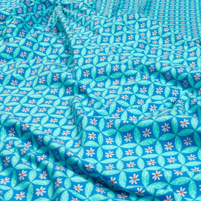 Riley Blake Stretch Jersey Knit Under the Canopy Circle Leaf Blue, Fabric by the Yard